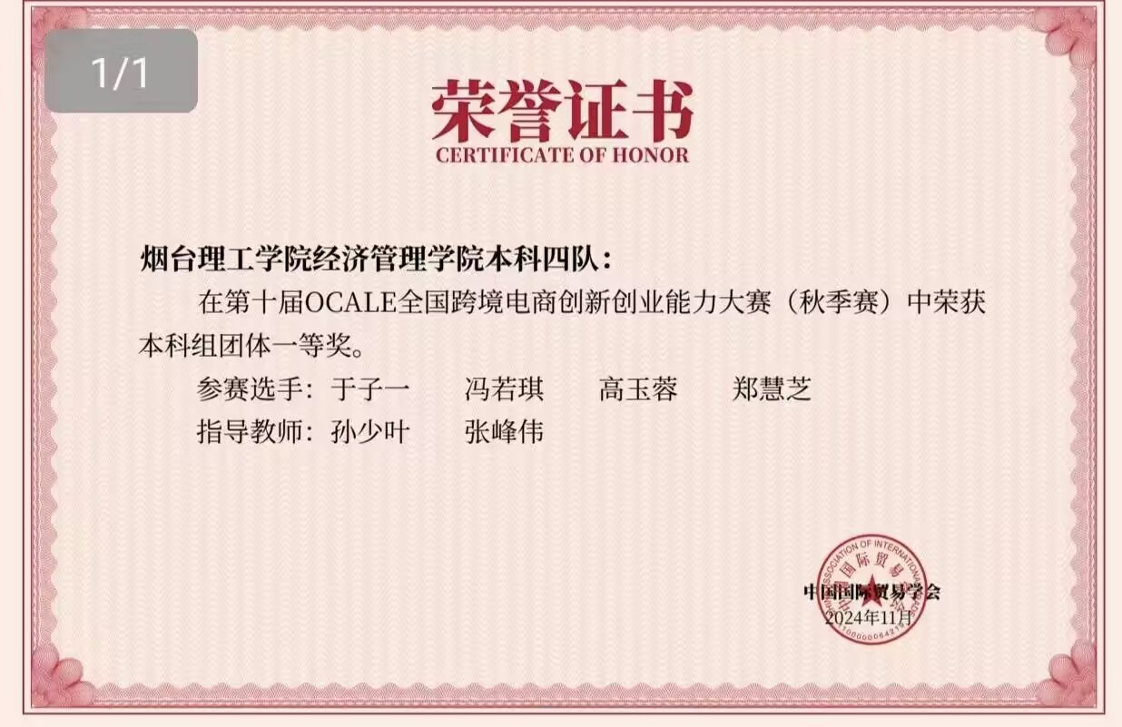 在学业上,身为国际经济与贸易专业的学生,于子一始终秉持“勤学慎思,求实创新”的原则,以饱满的热情投身专业学习。课堂上,她注重知识的逻辑体系与关键要点,善于归纳总结;课后,她广泛查阅行业报告与学术文献,延伸学习深度与广度,将零散知识融汇为系统框架。凭借持续的钻研与扎实的积累,她的专业成绩始终名列前茅,综合测评多次获得优秀。