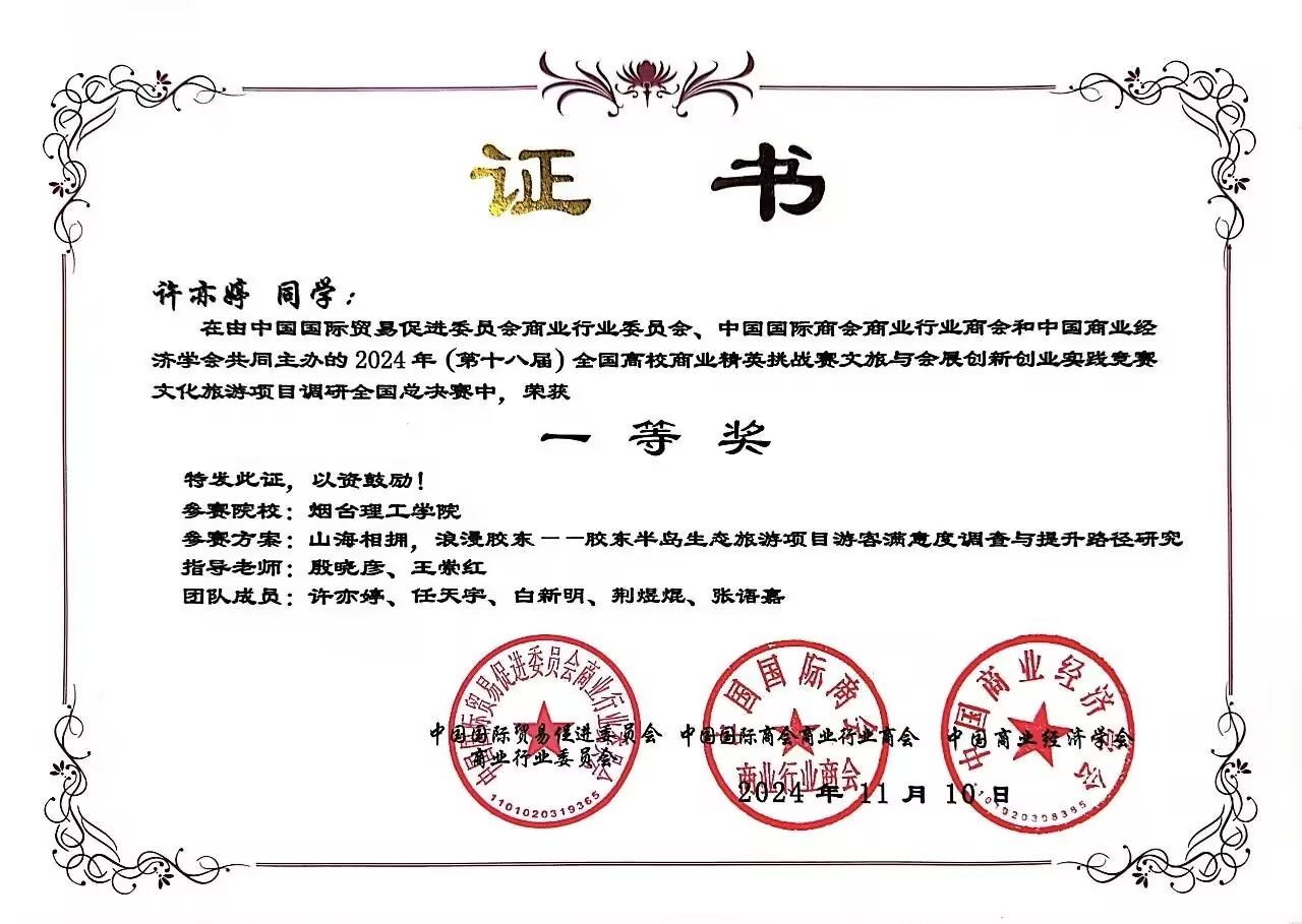 除课堂学习外,她积极投身创新创业竞赛和社会实践,将理论知识应用于真实情境,在团队协作与问题解决中不断拓宽思维边界,提升综合能力。“这些实践经历让我跳出书本,理解专业知识在现实中的价值,也让我在挑战中持续成长。”她这样总结自己的收获。