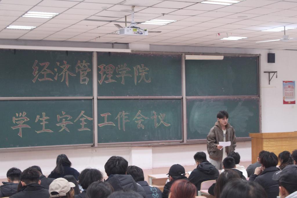 为进一步加强学生宿舍安全管理,夯实校园安全防线,营造文明、稳定的住宿环境,11月13日晚,经济管理学院在二教115召开学生安全工作会议。会议由25级辅导员刘禹辛老师主讲,各班班长、团支书及相关学生干部参加。