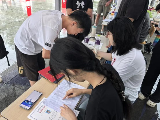 值得一提的是,迎新期间雨丝微凉,党员先锋志愿者们成为了校园里亮眼的风景线。他们身披雨衣、手举指引牌,主动从校门口接过新生行李,一路细致引导至报到点,用实际行动践行服务初心。一句句“小心路滑”的贴心提醒,一次次主动帮忙搬运行李的身影,让微凉的雨天满是温情,也让新生们切实感受到了经管学院的凝聚力。