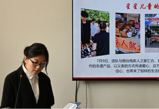 答辩会上,8支实践团队依次登台,通过生动的PPT展示、详实的数据支撑和真挚的实践故事,全面呈现暑期实践成果。“生态润心志愿服务队”聚焦节水主题,走进社区与校园开展宣传,传递绿色环保理念;“暖阳暖心志愿服务队”深耕敬老爱幼领域,为养老院老人送去陪伴与关怀;“忆昔启明社会实践队”以爱国教育为核心,走访红色纪念馆并组织主题宣讲,让红色基因扎根青年心中;“众心向阳社会实践队”开展党史研学,重走革命路筑牢理想信念。