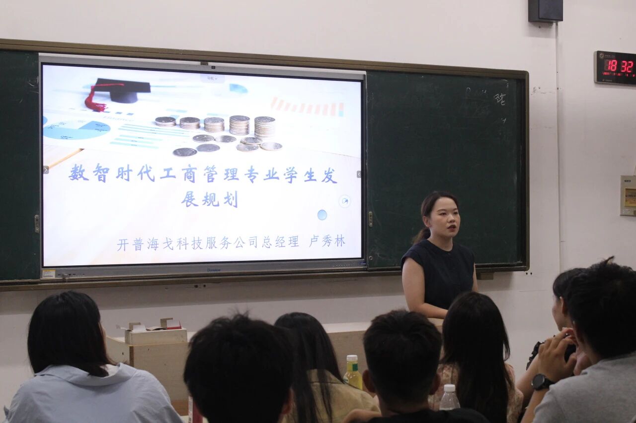 为帮助2025级新生明确职业方向,筑牢生涯发展基础,近日,经济管理学院就业创业部“琴心之行,生涯启航”新生职业规划教育系列活动正式拉开帷幕。首场培训聚焦工商管理专业,特邀山东开普海戈科技服务有限公司总经理卢秀林担任主讲人,以“数智时代工商管理专业学生发展规划”为主题,为新生带来了一场兼具实践深度与前瞻视野的分享。