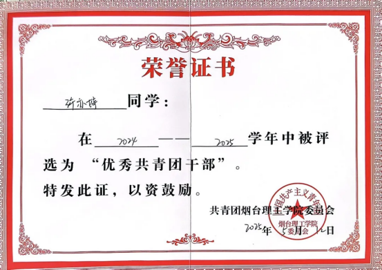5.2025年5月获烟台理工学院校级优秀共青团干部称号