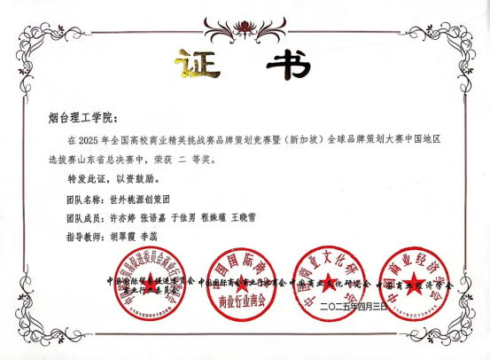3.2025年3月获2025年全国大学生商业精英挑战赛品牌策划竞赛山东省决赛二等奖