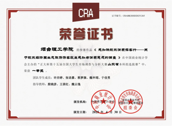 4.2025年4月获第十五届“正大杯”全国大学生市场调查与分析大赛山东省总决赛一等奖