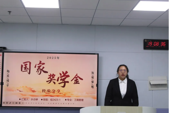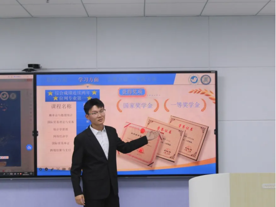 在经验分享环节,6位国家奖学金获得者与3位省政府奖学金获得者依次登台,结合自身经历,从学业规划、竞赛备赛、能力提升等不同维度展开分享,展现了经管优秀学子的风采与积淀。