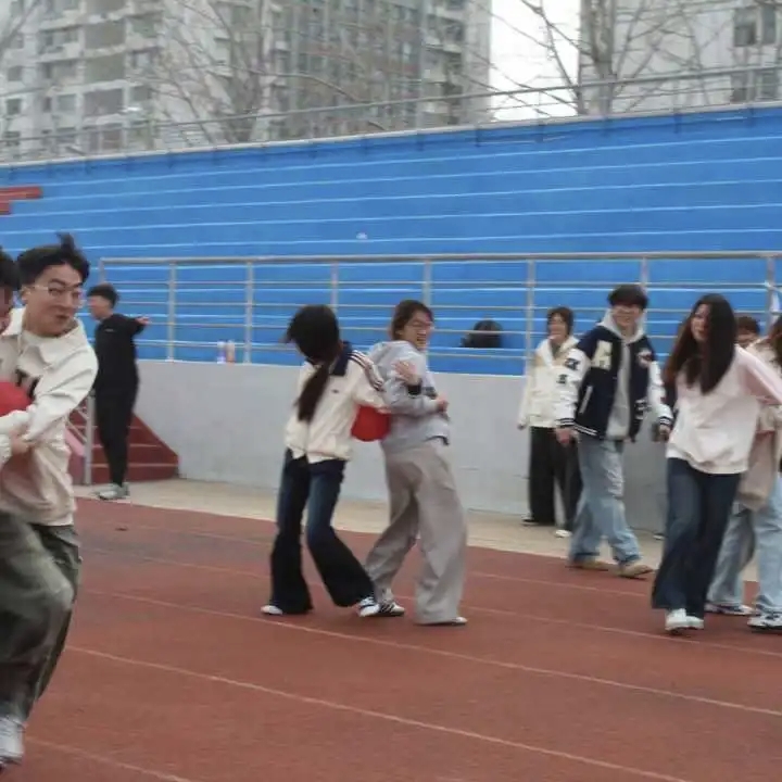 最激动人心的当属撕名牌大战与混合接力。撕名牌环节里,选手们分组对抗,凭借敏捷的反应、默契的配合展开“攻防战”,有人巧妙躲避、有人果断出击,团队协作的力量在此时展现得淋漓尽致。混合接力项目则将整场运动会的氛围推向高潮,每一位选手都拼尽全力,交接棒的瞬间传递着信任与责任,跑道上的身影成为赛场上最耀眼的风景。观众席上,同学们的呐喊声、助威声此起彼伏,为参赛选手们注入源源不断的能量,整个操场洋溢着热烈又欢快的气息。