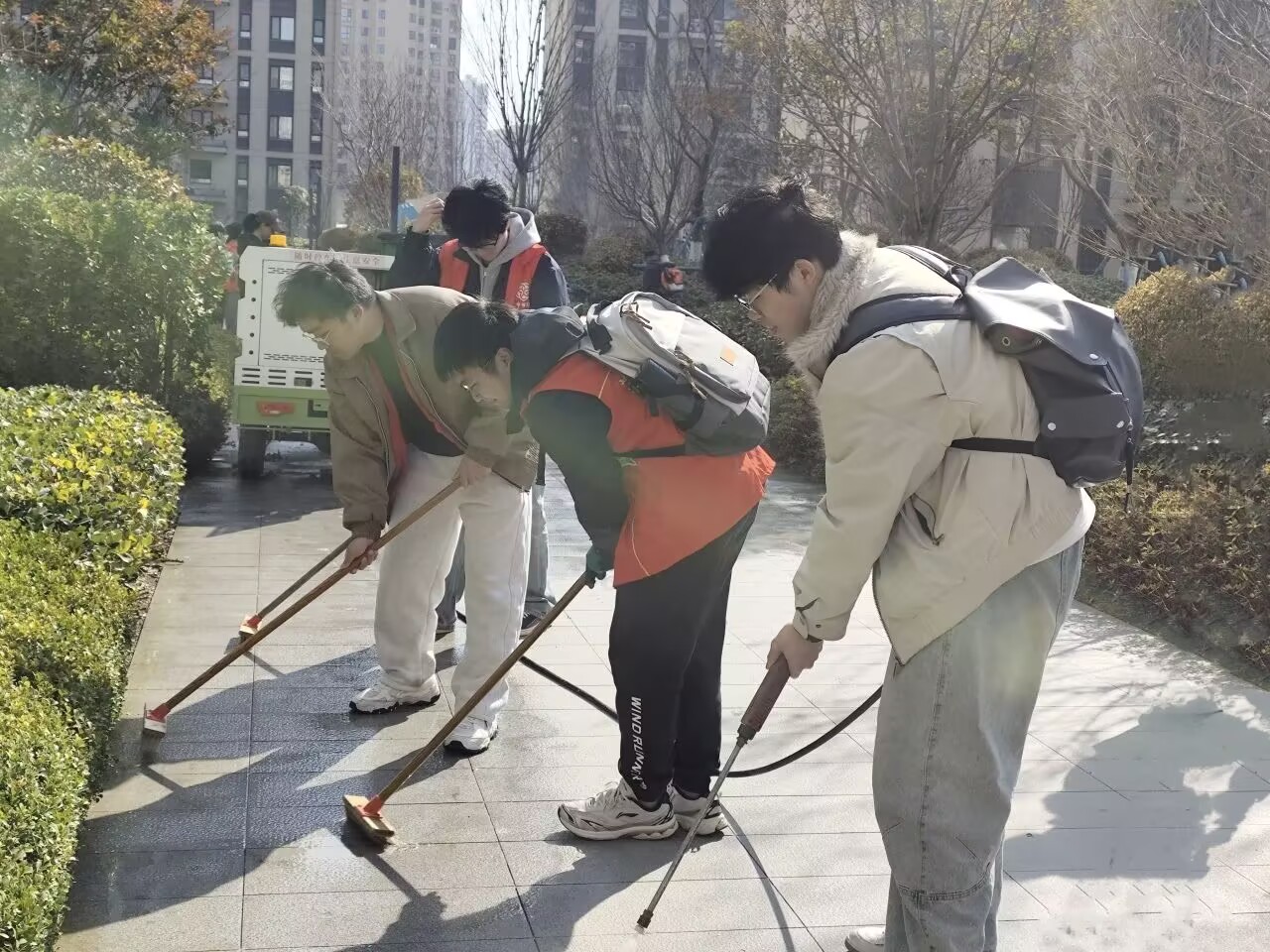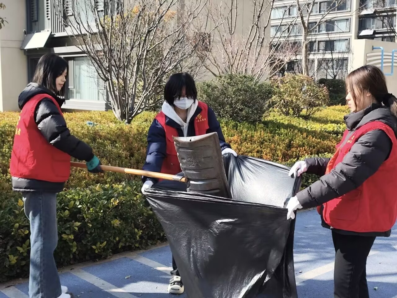 活动伊始,新华翡翠观海负责人张程雪向各位团员细致讲解了本次志愿服务活动的具体内容与工作安排。本次活动主要开展垃圾清理、杂草铲除、落叶清扫等环境整治工作,工作人员为大家统一分发手套、铲子等清洁工具。紧接着,各班级团支书有序组织分工,全体团员精神饱满、主动参与、认真协作,以积极昂扬的姿态投身志愿服务,用心清扫社区环境,全力恢复社区整洁美观的面貌,充分展现了青年团员的责任担当与奉献精神。活动结束后,两个团支部的团员们与社区负责人张程雪合影留念,为本次志愿活动画上圆满句号。